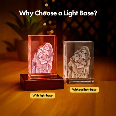 A light base enhances every detail of your 3D engraving, making your photo brighter, sharper, and more vibrant. Without it, your piece still looks elegant, but with light, it truly shines.
