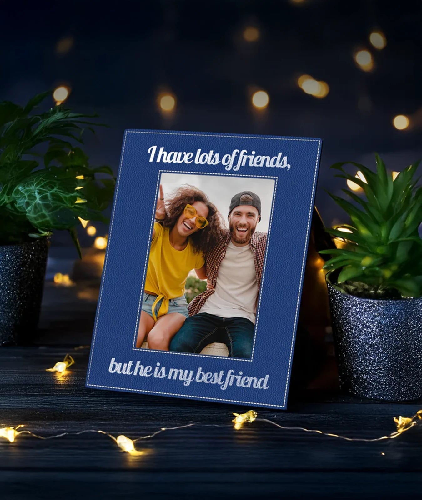 The Leather Picture Frame is a sophisticated and elegant way to showcase your most treasured memories. Handcrafted from high-quality leather, this frame offers a refined, luxurious look that complements any home or office decor. Its rich texture and timeless design make it a standout piece, perfect for displaying your favorite photos, certificates, or artwork with style and grace.